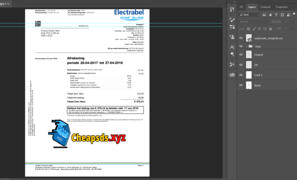 Grab now fully editable Belgium Facture Electrabel Bill Psd Template from our website Cheapsds and put your own info to create a fake copy of Fake Belgium Facture Electrabel Bill Template