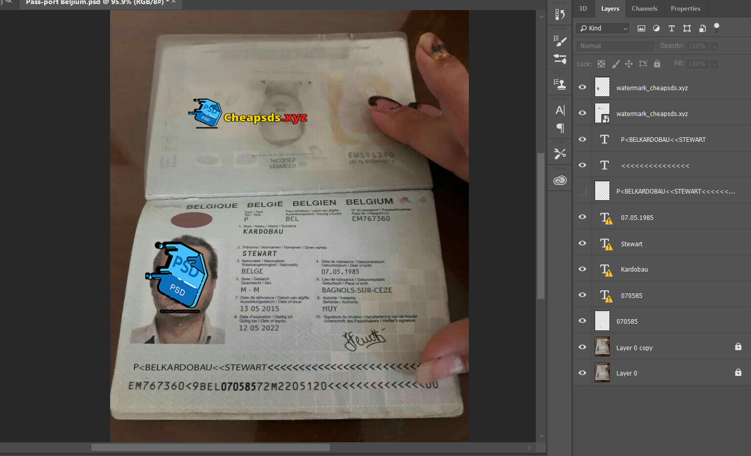 Belgium Passport psd template Fully editable photoshop template. High quality template. Easy to customize, Layer based, fonts included.