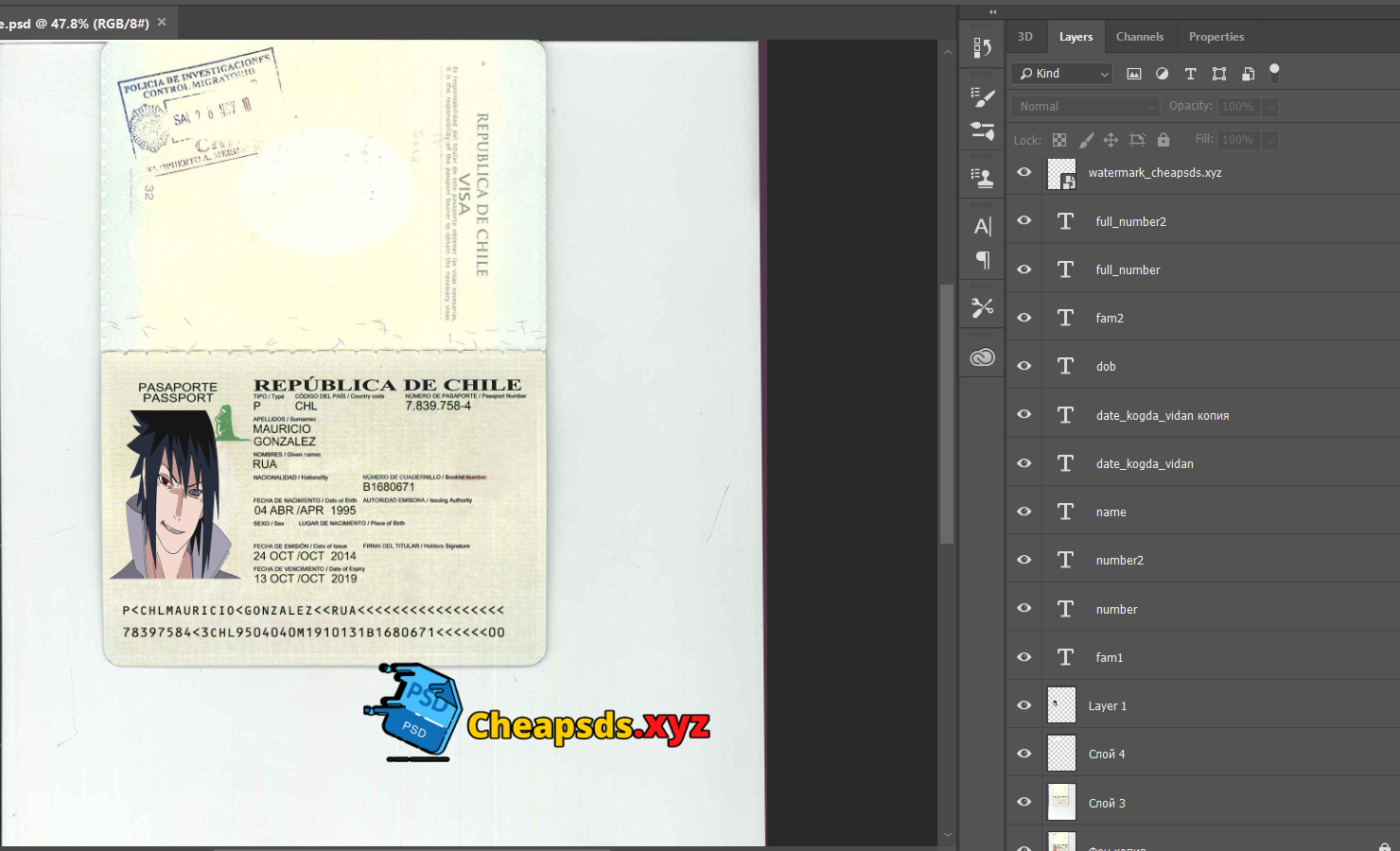 Chile Passport psd template Fully editable photoshop template. High quality template. Easy to customize, Layer based, fonts included.