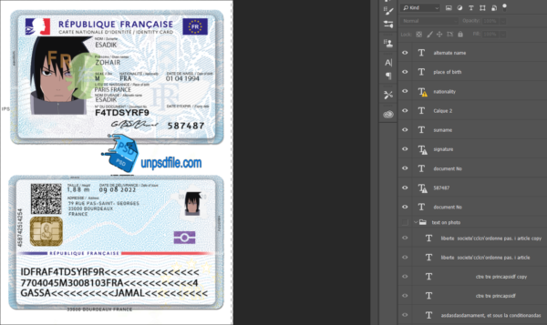 France ID psd template Fully editable photoshop template. High quality template. Easy to customize, Layer based, fonts included.