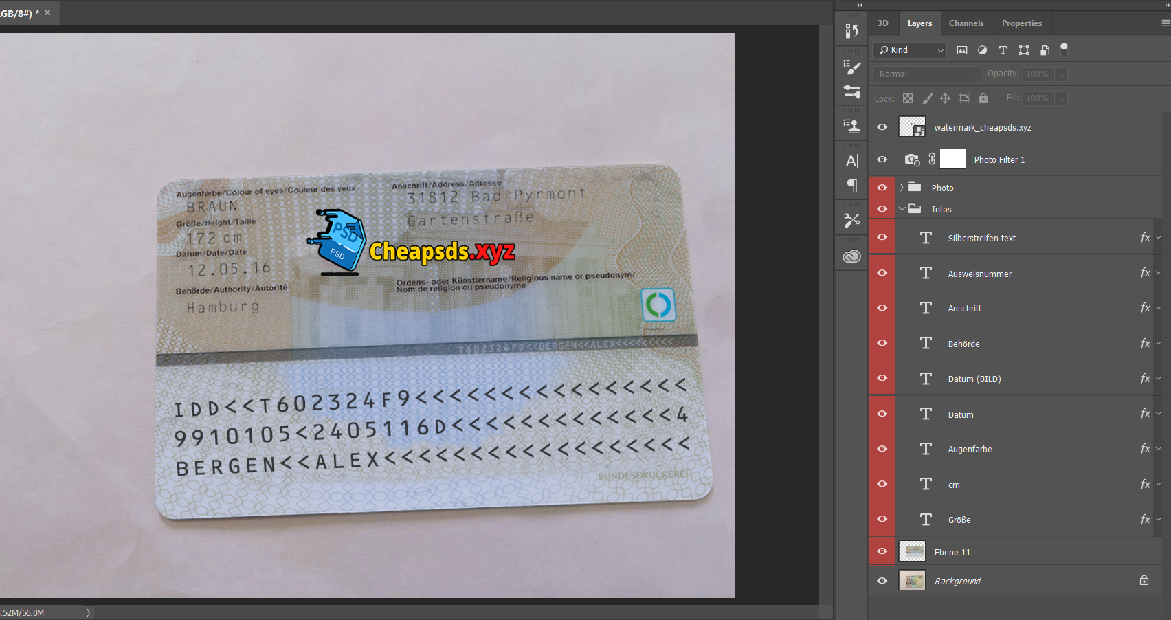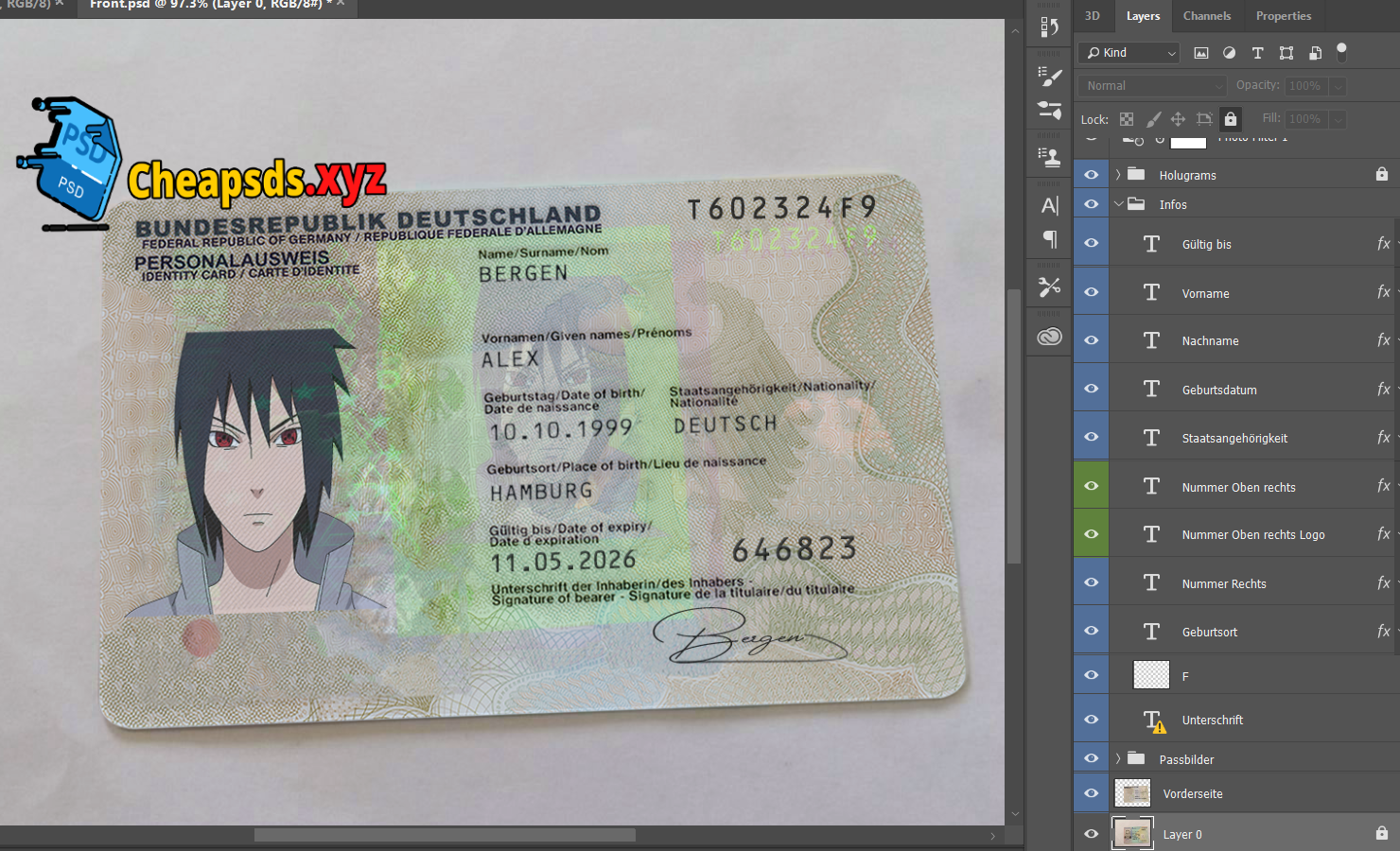 Grab now fully editable Germany ID Psd Template from our website cheapsds and put your own info to create a fake copy of Fake Germany ID Template
