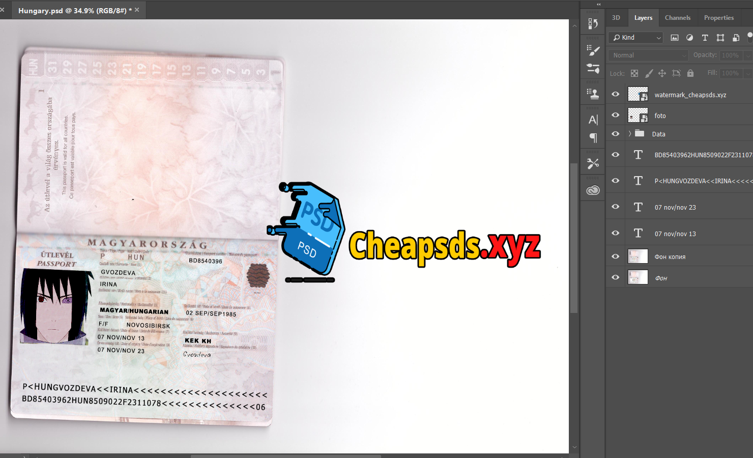 Hungary (Magyarország) Passport psd template Fully editable photoshop template. High quality template. Easy to customize, Layer based, fonts included.