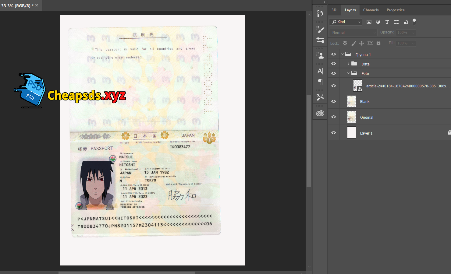 Japan Passport psd template Fully editable photoshop template. High quality template. Easy to customize, Layer based, fonts included.