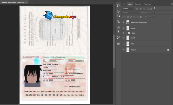 Mexico Passport psd template Fully editable photoshop template. High quality template. Easy to customize, Layer based, fonts included.