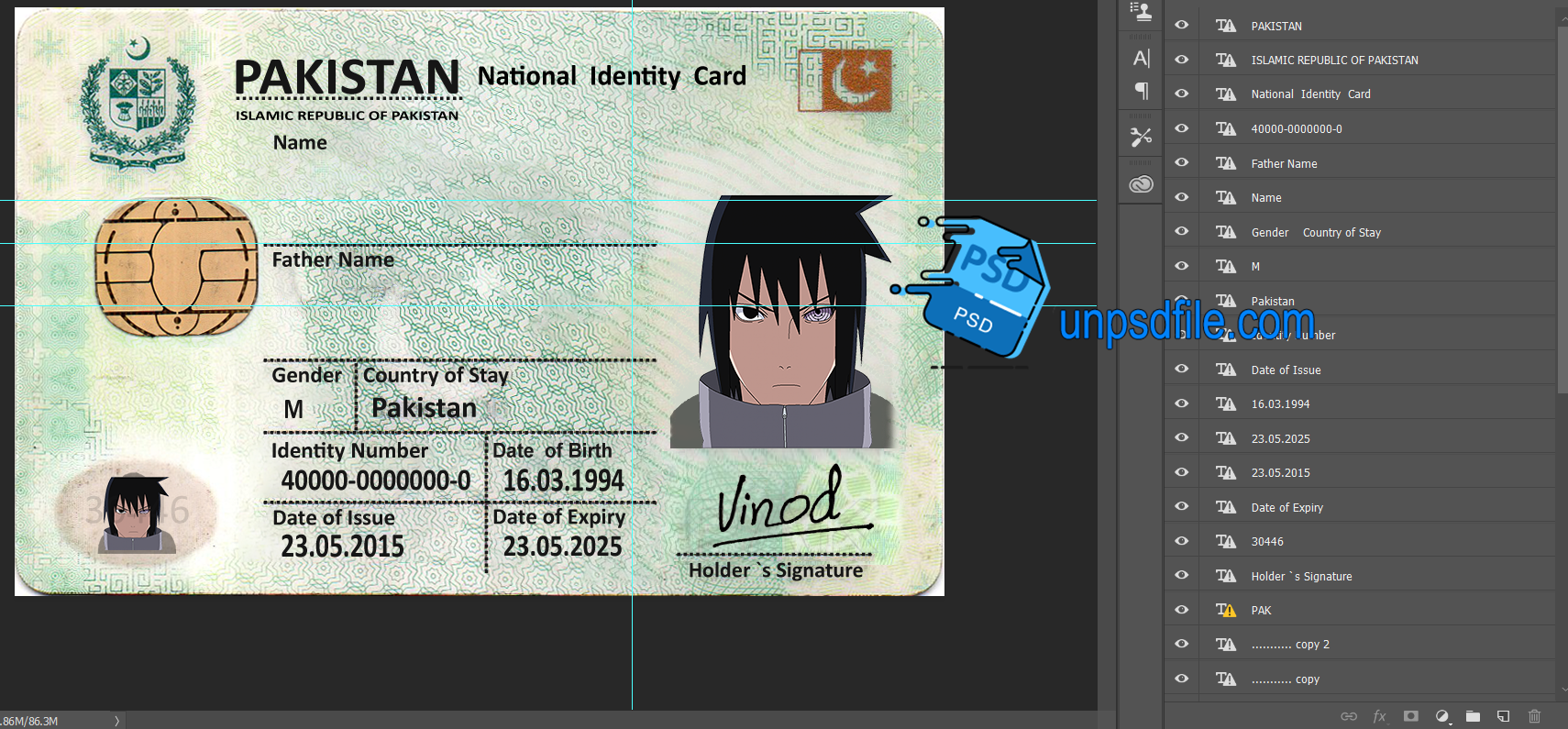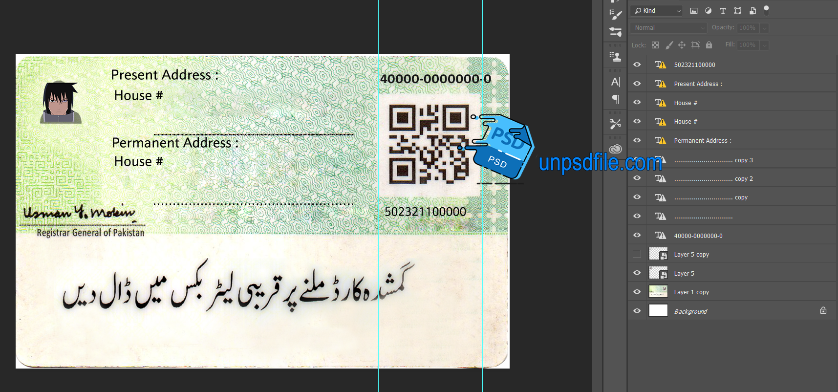 Pakistan ID psd template Fully editable photoshop template. High quality template. Easy to customize, Layer based, fonts included.