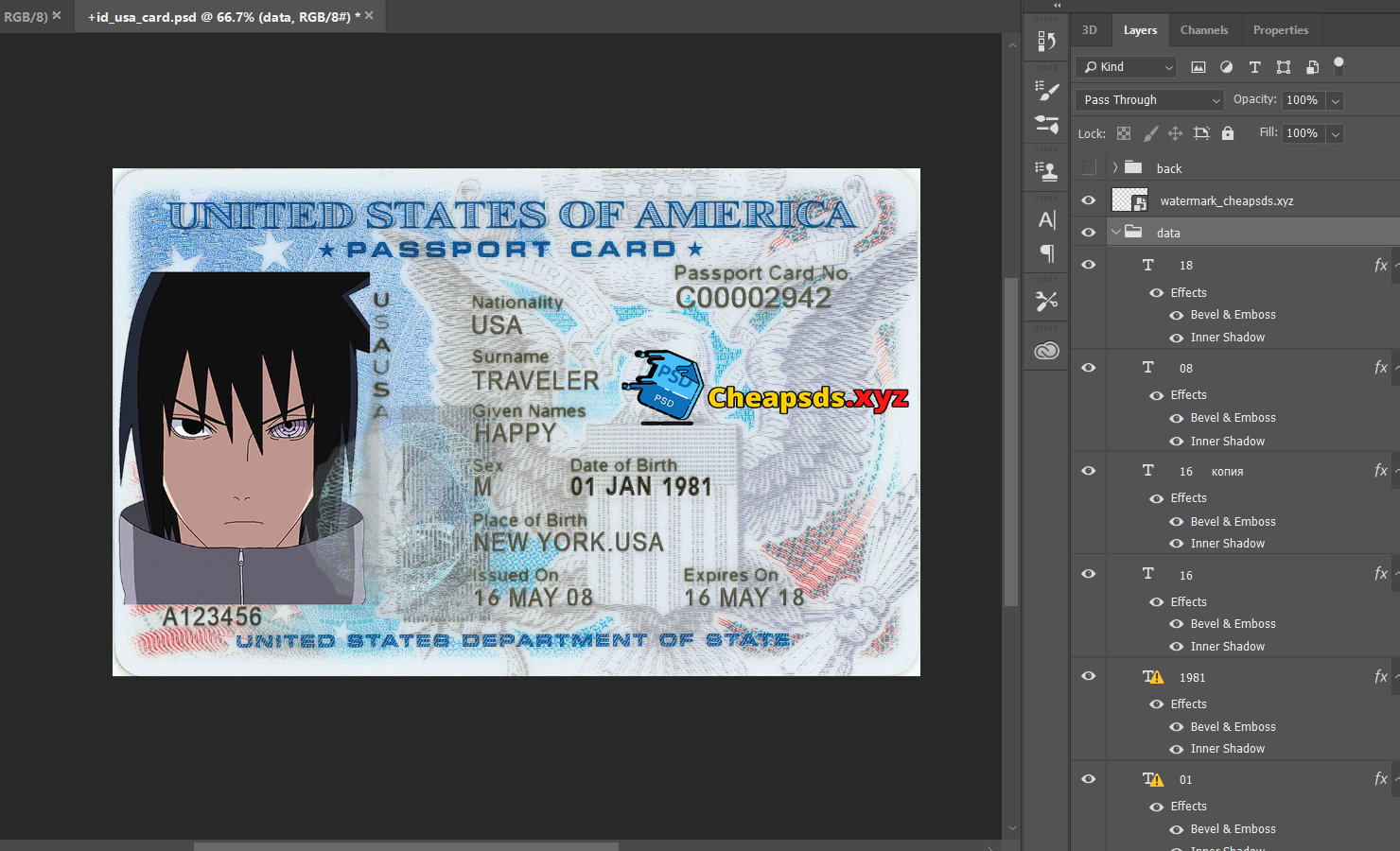 USA ID psd template Fully editable photoshop template. High quality template. Easy to customize, Layer based, fonts included.