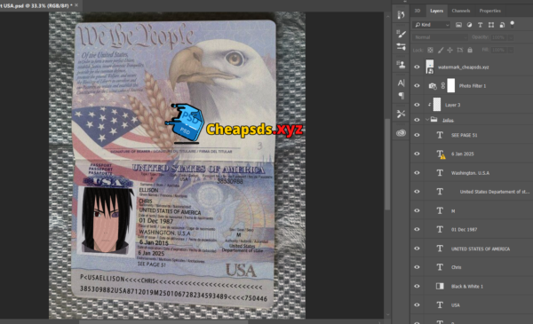 USA Passport psd template Fully editable photoshop template. High quality template. Easy to customize, Layer based, fonts included.