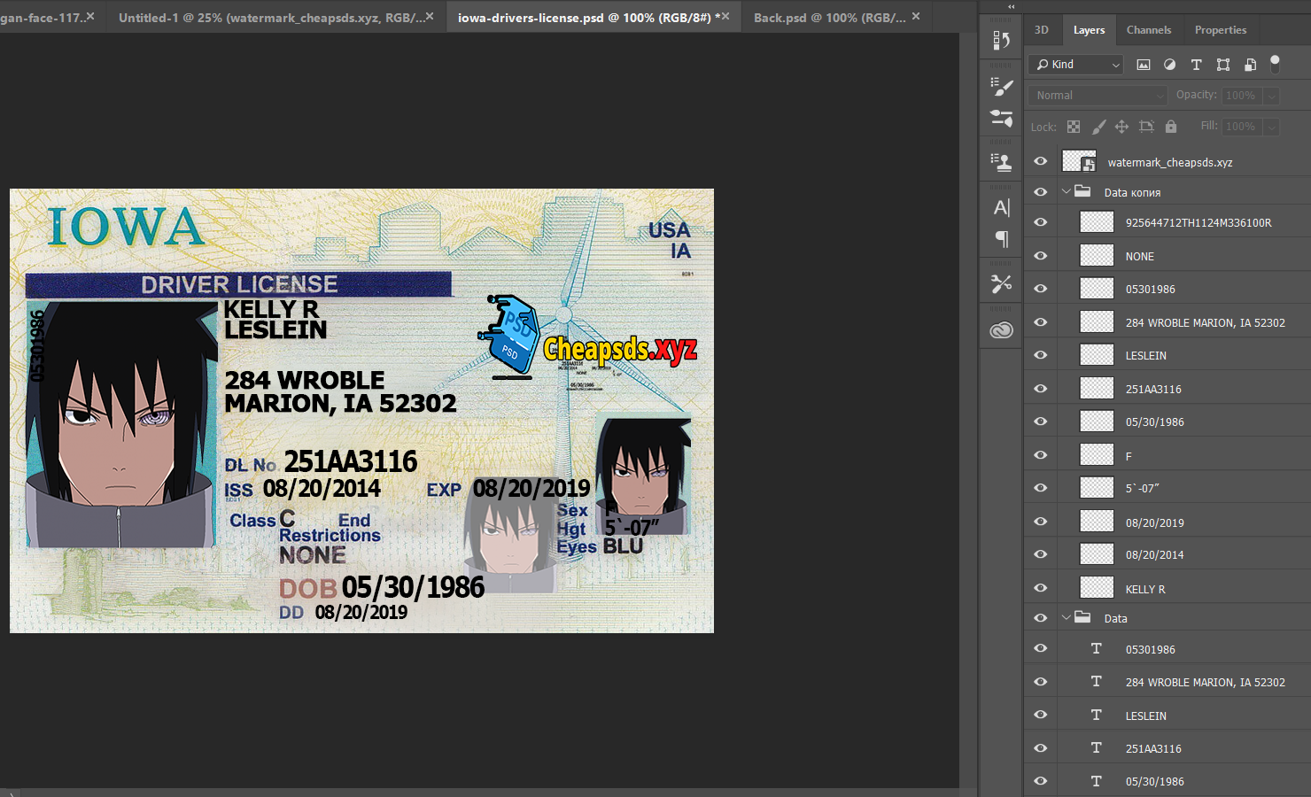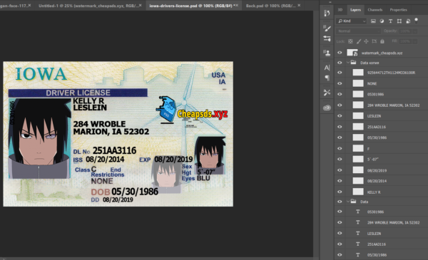 you can edit this template and put any name, address, license number, Driving License number, birth date, height, weight, expire date, change photos etc.