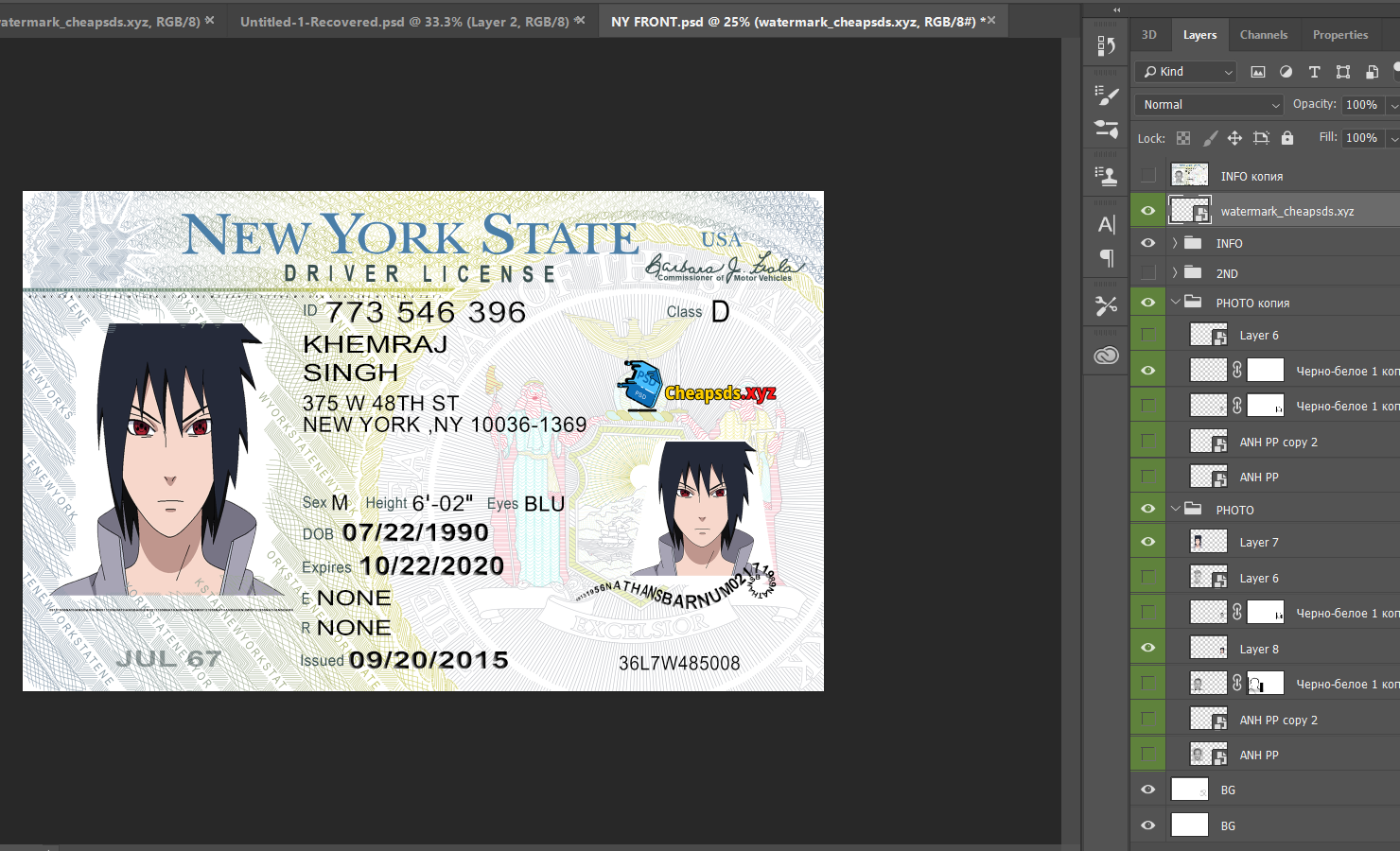 you can edit this template and put any name, address, license number, Driving License number, birth date, height, weight, expire date, change photos etc.