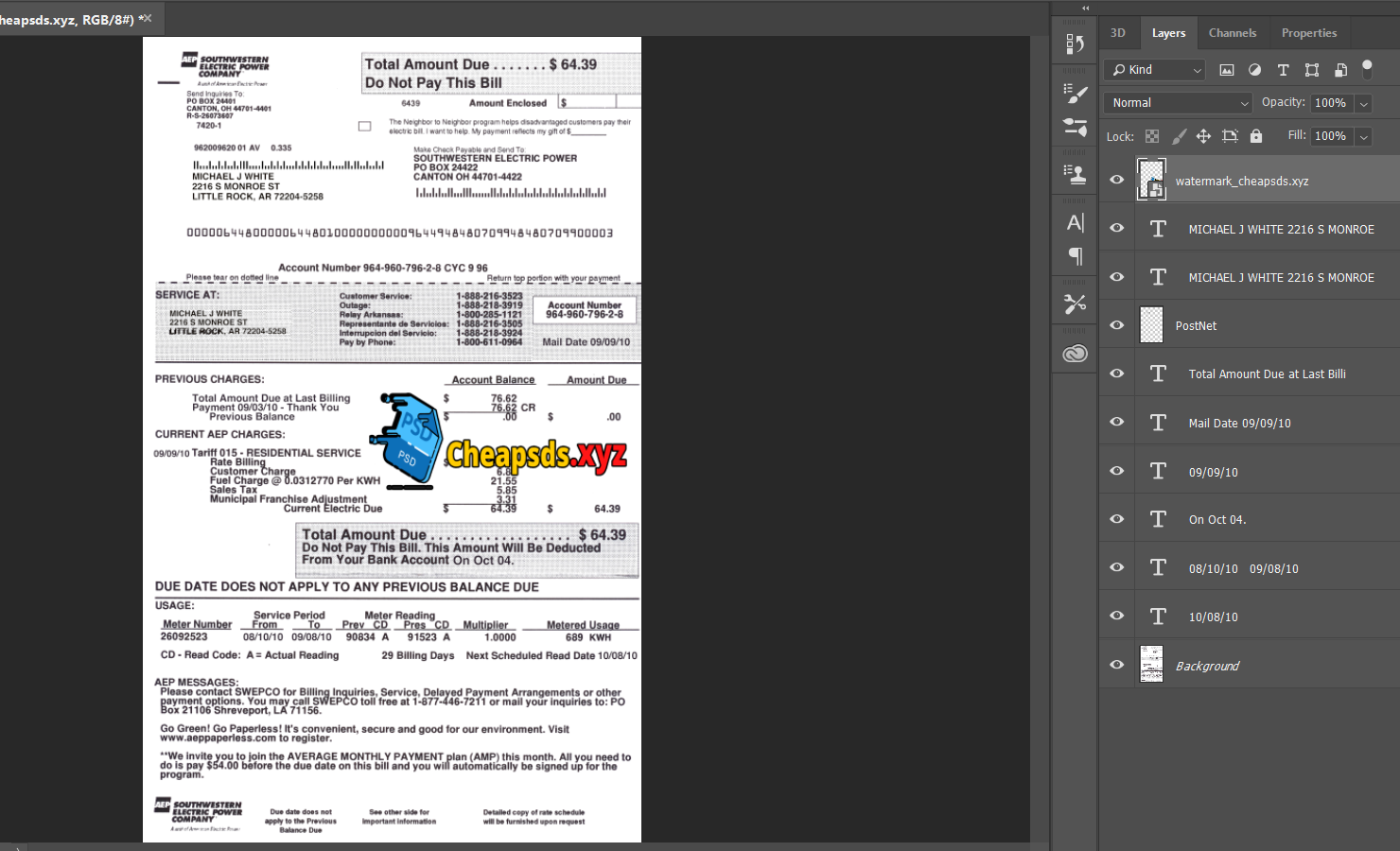 Grab now fully editable USA Facture Electric Bill Psd Template from our website Cheapsds and put your own info to create a fake copy of Fake USA Facture Electric Bill Template